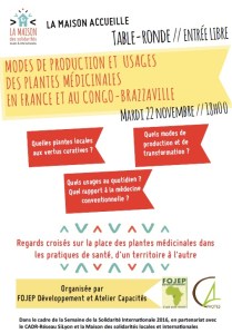Dans le cadre de la Semaine de la Solidarité Internationale 2016, Atelier CAPACITES co-organise avec l’association FOJEP Développement une conférence sur les modes de production et usages des plantes médicinales. Elle aura lieu le 22 novembre 2016, de 18h à 20h30, à la Maison des Solidarités Locales et Internationales (215 rue Vendôme – Lyon 3e).