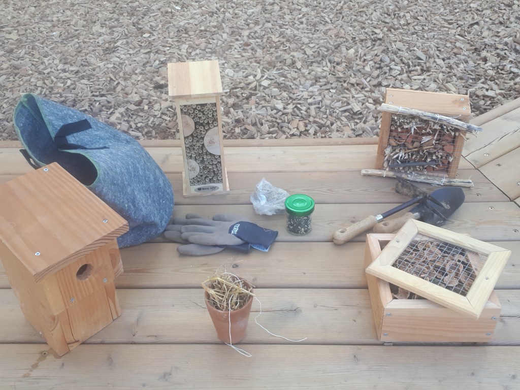 Le jardin, ce n’est pas que du végétal ! Il accueille aussi toute une biodiversité animale. Pour appréhender le sujet, les écoliers ont participé à la construction d’un hôtel à insectes à partir des éléments présents dans la cour de récréation (copeaux de bois, feuilles, bogues…). Il ont pu aussi découvrir d’autres types d’aménagements comme des hôtels à coccinelles, à abeilles et des nichoirs.