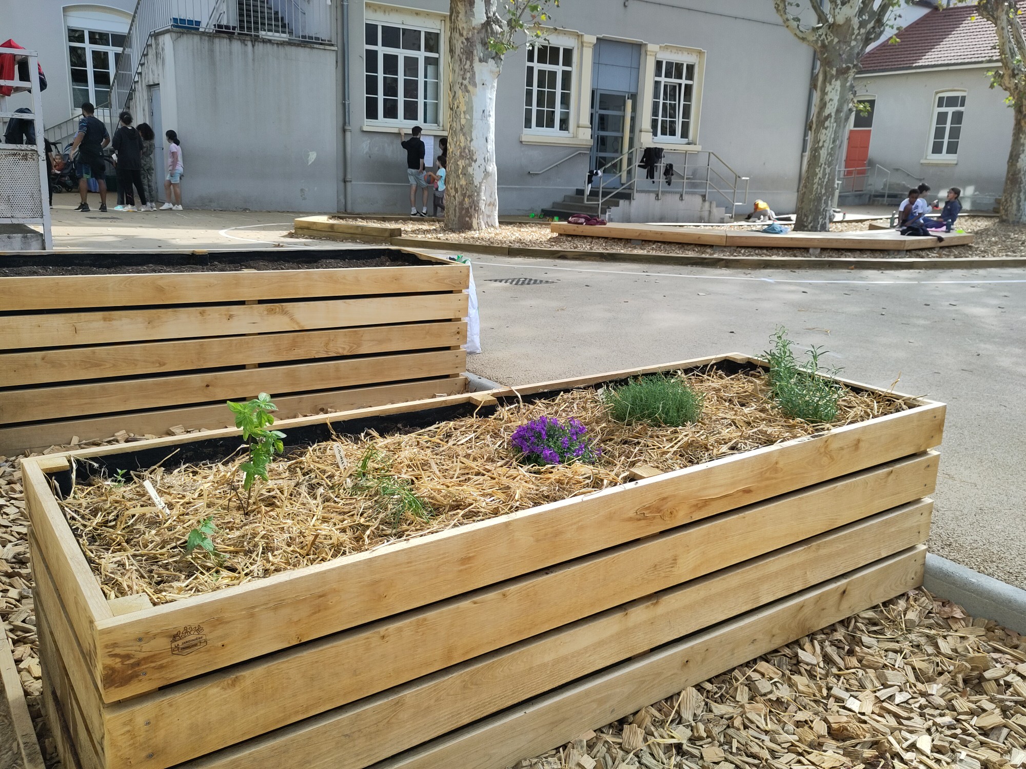 Les écoliers ont ainsi créé un petit jardin, avec des aromatiques et des petites plantes en fleur ! Ils ont pu voir les racines « en vrai », mettre en pratique les apports de l’atelier précédent – notamment le paillage – et arroser.